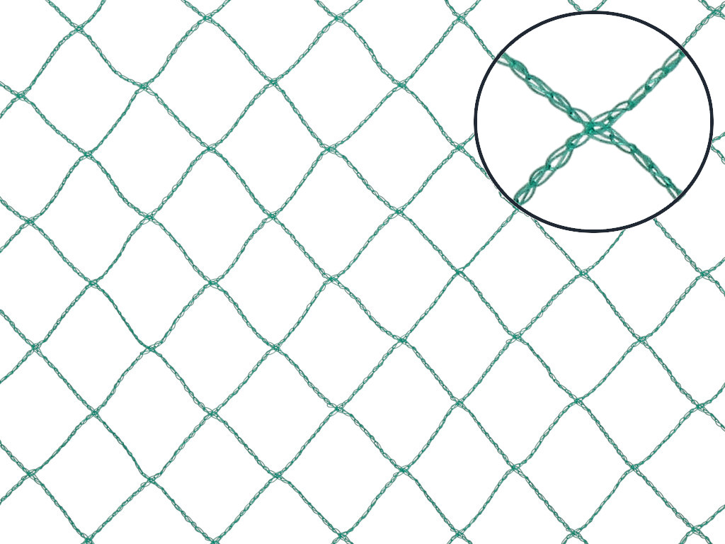 Standardowa siatka ochronna o oczku 25x25 mm (gramatura 14 g/m², dwie splecione polietylenowe żyłki o grubości 0,2 mm każda, kolory: czarny, zielony)