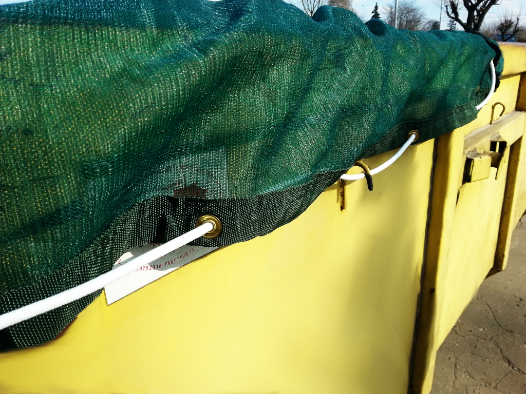 W przypadku zabezpieczenia bardzo drobnych, sypkich materiałów polecamy wykorzystanie plandek przepuszczających powietrze o gramaturze 150g/m2. Bardzo gęste przeszycia nićmi polietylenowymi pozwalają na skuteczną ochronę przed wywianiem, rozsypywaniem nawet najdrobniejszych materiałów. Siatka na kontener spełnia bardzo wysokie wymogi wytrzymałości na uszkodzenia mechaniczne oraz jest wykonywana na dowolne wymiary, co pozwala na jej łatwe dopasowanie do zabezpieczanych powierzchni. Standardowo brzegi siatek obszywamy sznurkiem o grubości ok. 5mm (z wyjątkiem siatek o gramaturze 150g/m2).