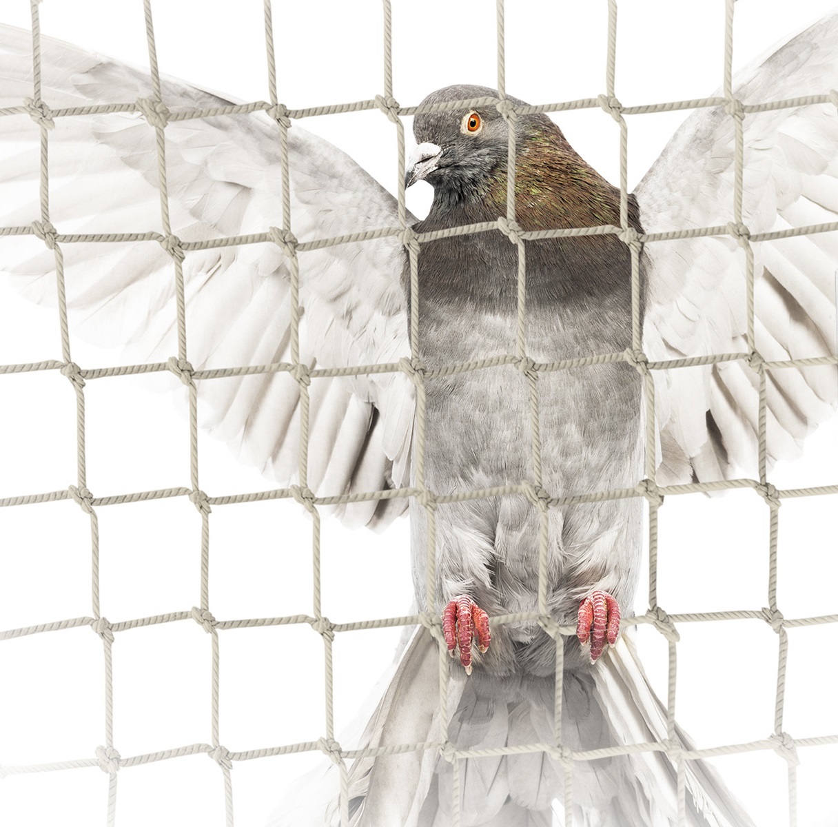 - • większych przestrzeni takich jak dziedzińce, dachy, elewacje budynków, hale produkcyjne, magazyny i inne miejsca narażone na niepożadaną obecność ptaków