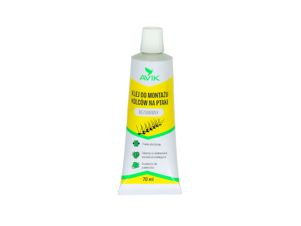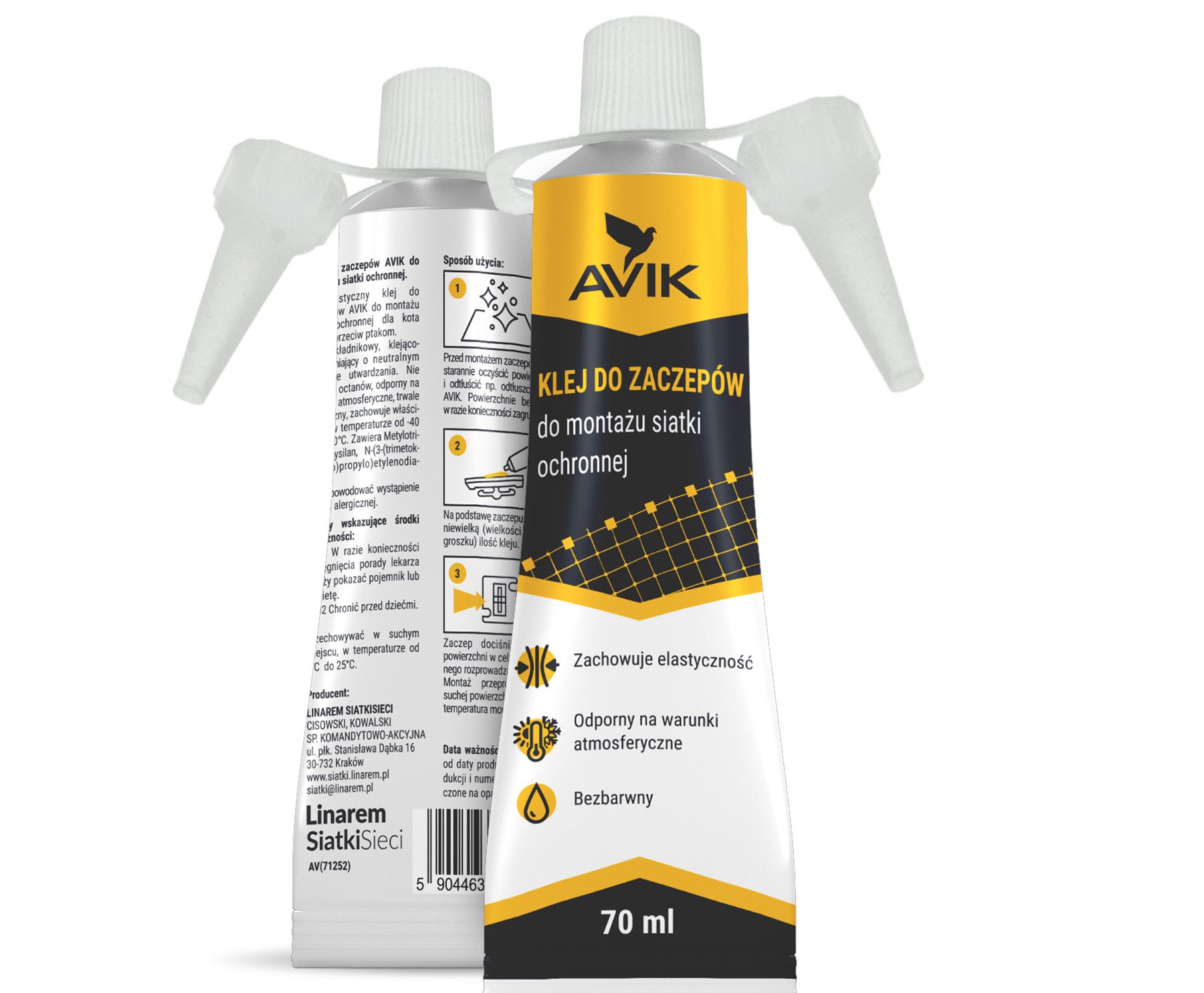 Klej AVIK przeznaczony do montażu bezinwazyjnego zaczepów do siatki ochronnej. Nie zawiera octanów, odporny na warunki zewnętrzne. Zachowuje właściwości w temperaturze od od -40 do +120 Cº. Tubka o pojemności 310 ml z aplikatorem.