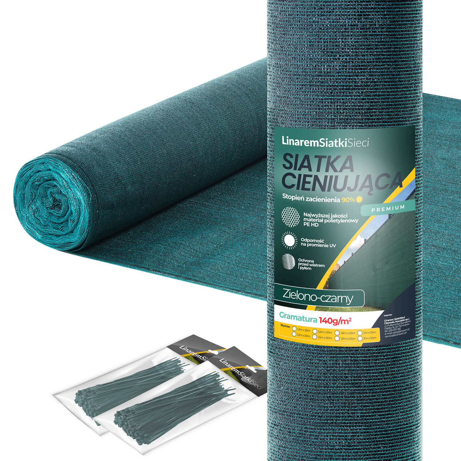 Siatki cieniujące premium 140 g/m² charakteryzują się wyjątkowym połączeniem kolorów zielonego i czarnego.