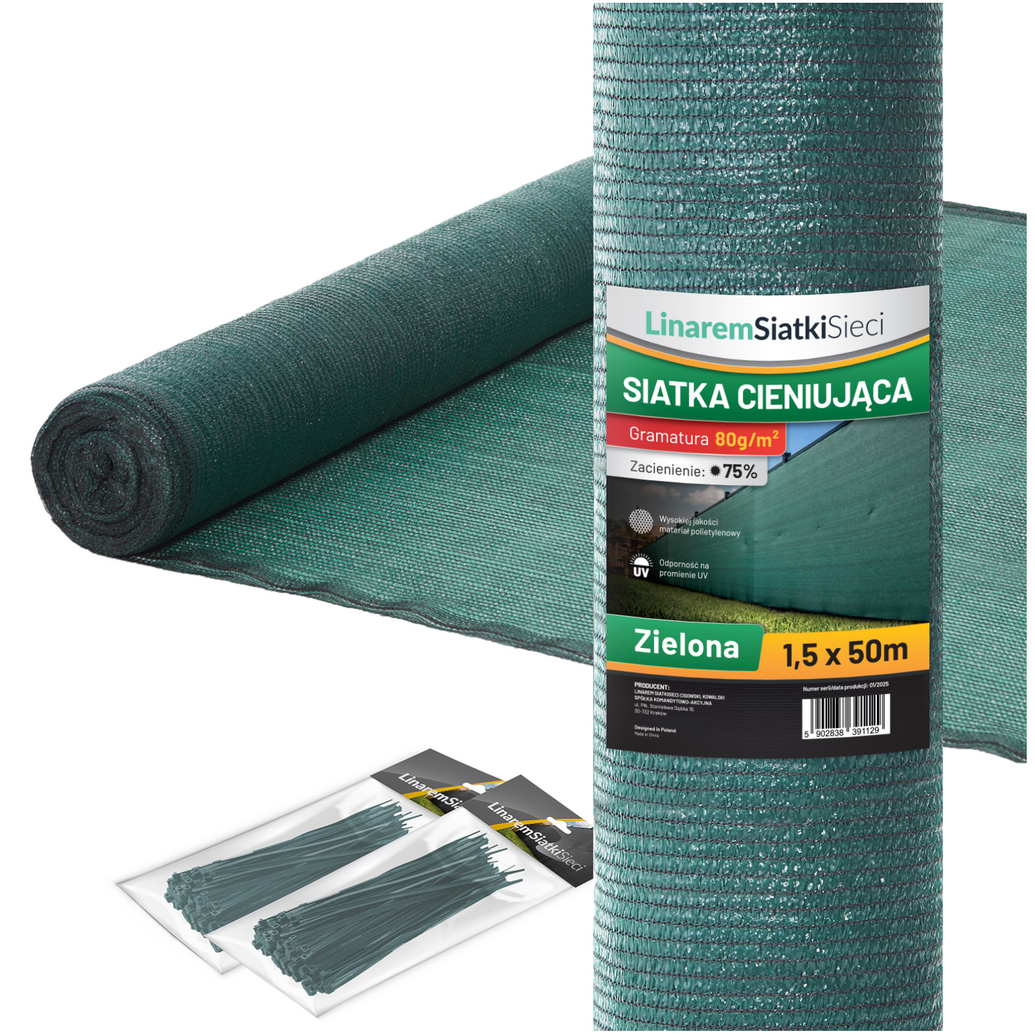 SIATKA CIENIUJĄCA 75% 1,5m x 50m LINAREM SIATKISIECI 80g/m2 W KOLORZE ZIELONYM