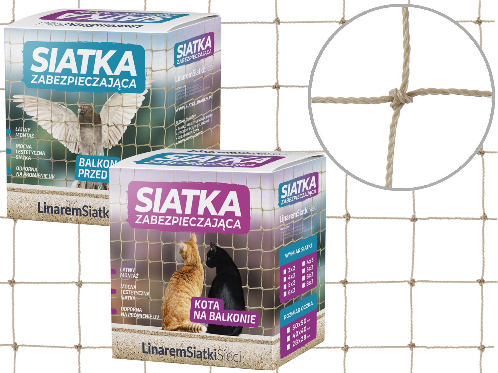 Dostępna w zestawie siatka polietylenowa o niedużych oczkach 28 x 28 mm doskonale sprawdzi się do zabezpieczenia małego Kotka, który stara się spędzić każdą chwilę na balkonie lub oknie.