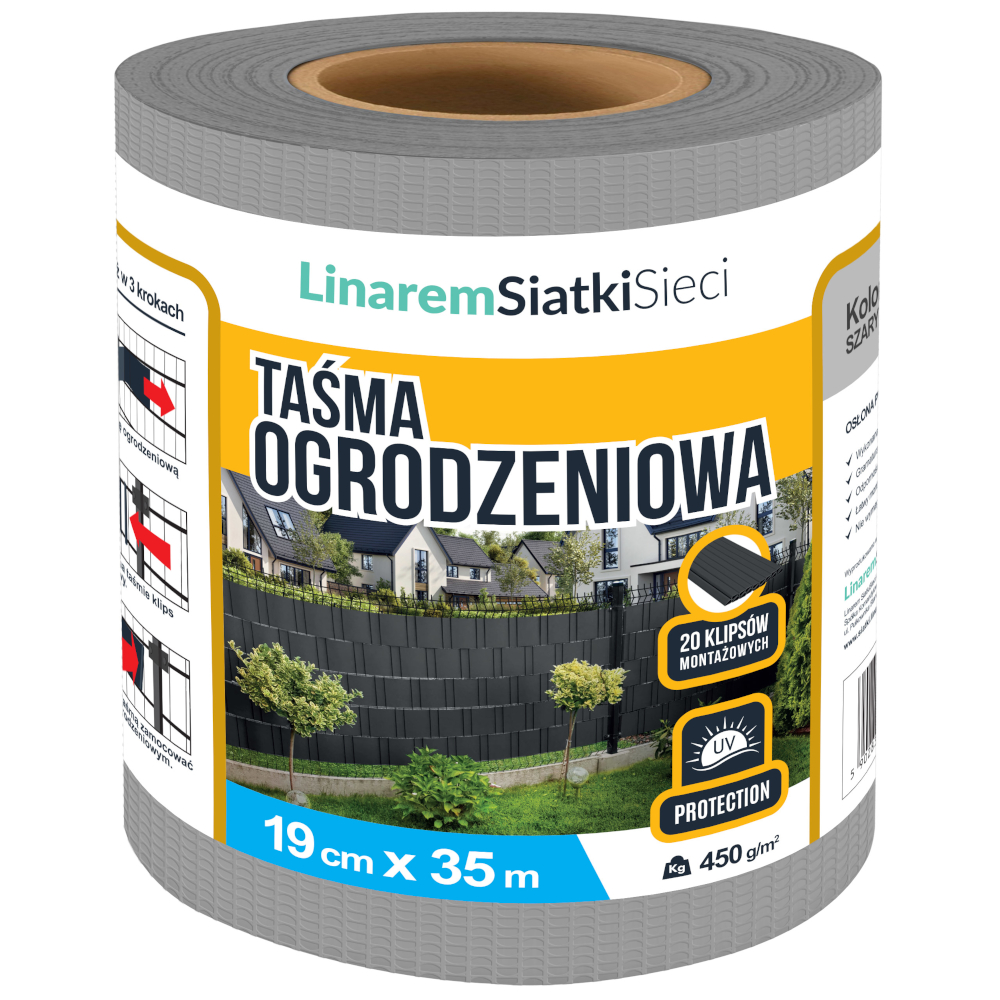 ORYGINALNA TAŚMA OGRODZENIOWA LINAREM SIATKISIECI® 19cm x 35mb. KOLOR SZARY RAL 7040.