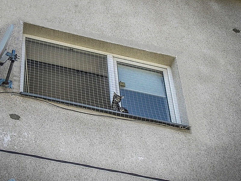 ☝ Po zamontowaniu siatki należy bacznie obserwować kota czy aby nie podgryza siatki – w przypadku podgryzania zalecamy siatkę wzmocnioną drucikiem o oczkach 30x30mm.