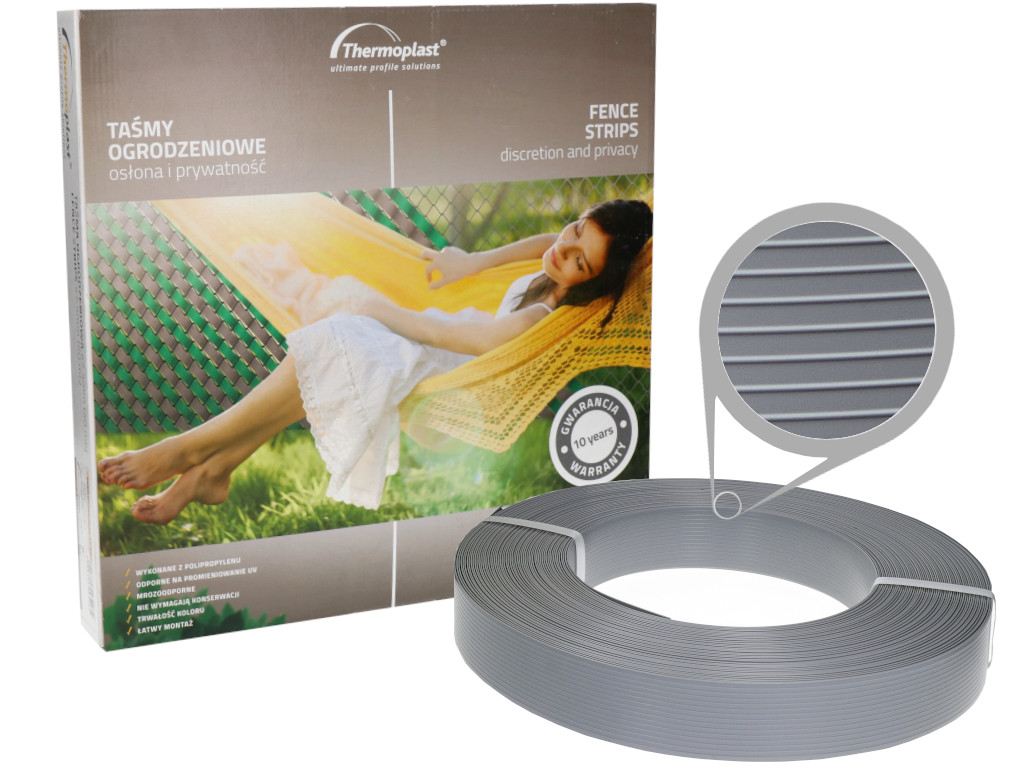 TAŚMA OGRODZENIOWA JASNOSZARA THERMOPLAST CLASSIC LINE POLIPROPYLEN. ROLKA 4,75cm x 50mb.
