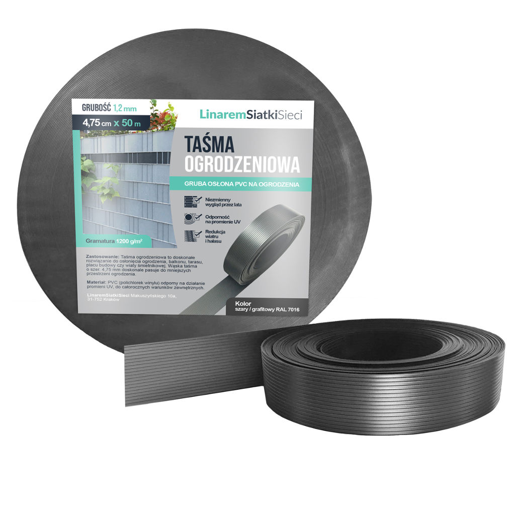 Wąska Grafitowa Taśma Ogrodzeniowa SiatkiSieci Premium 4,75 cm