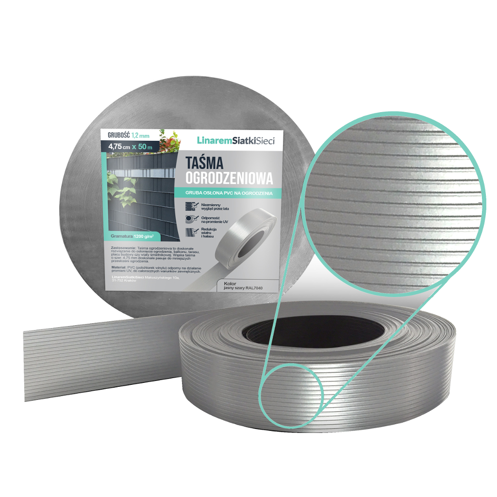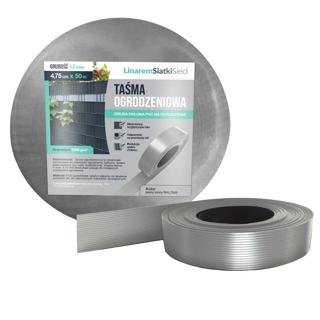 Wąska Jasnoszara Taśma Ogrodzeniowa SiatkiSieci Premium 4,75 cm