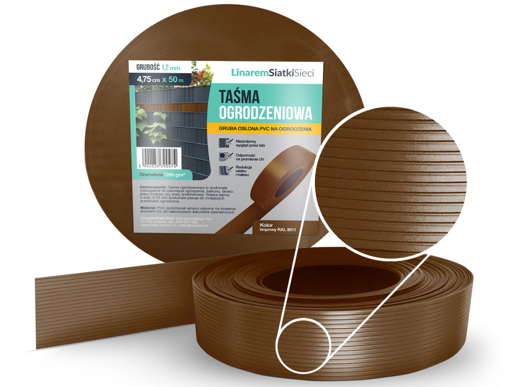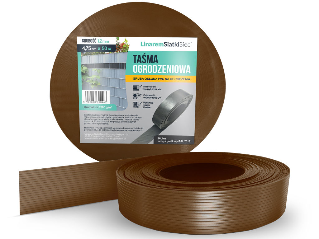 Wąska Brązowa Taśma Ogrodzeniowa SiatkiSieci Premium 4,75 cm