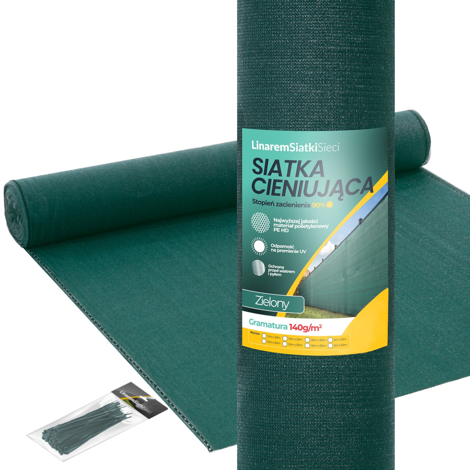 SIATKA CIENIUJĄCA 90% 2m x 25m LINAREM SIATKISIECI 140g/m2 W KOLORZE ZIELONYM