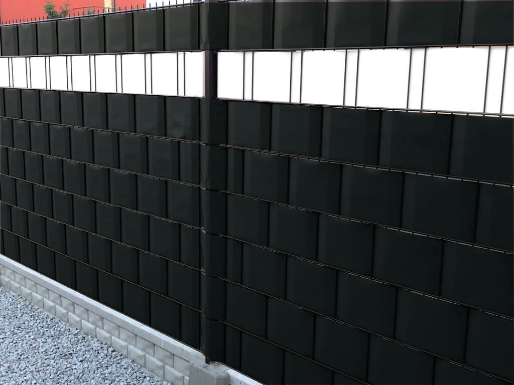 - Osłona ogrodzeń panelowych 3D z przetłoczeniami - przy połączeniu z taśmą ogrodzeniową 4,75cm