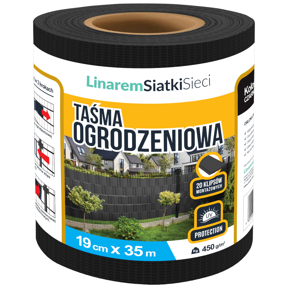 ORYGINALNA TAŚMA OGRODZENIOWA LINAREM SIATKISIECI® 19cm x 35mb. KOLOR CZARNY RAL 9005.