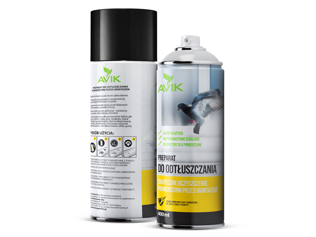 Preparat marki AVIK jest łatwy w użyciu, działa natychmiastowo oraz jest bezpieczny dla odtłuszczanych powierzchni, jednocześnie skutecznie oczyszczając je przed montażem.