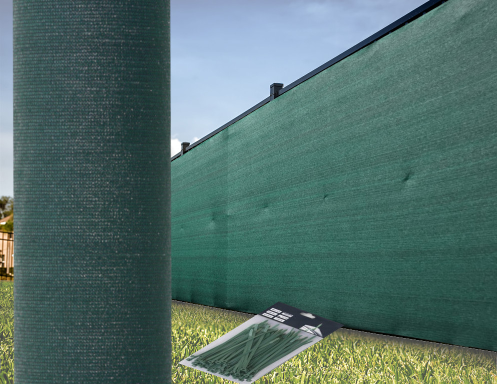 Siatka cieniująca zamocowana na tradycyjnej siatce ogrodzeniowej, panelach czy płocie to doskonały sposób na stworzenie niskim kosztem wysoce maskującego ogrodzenia.