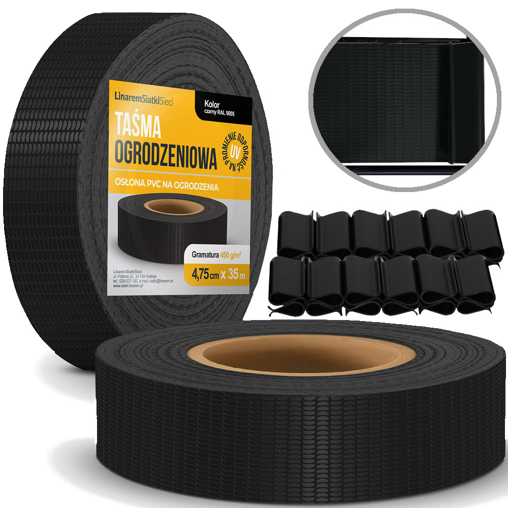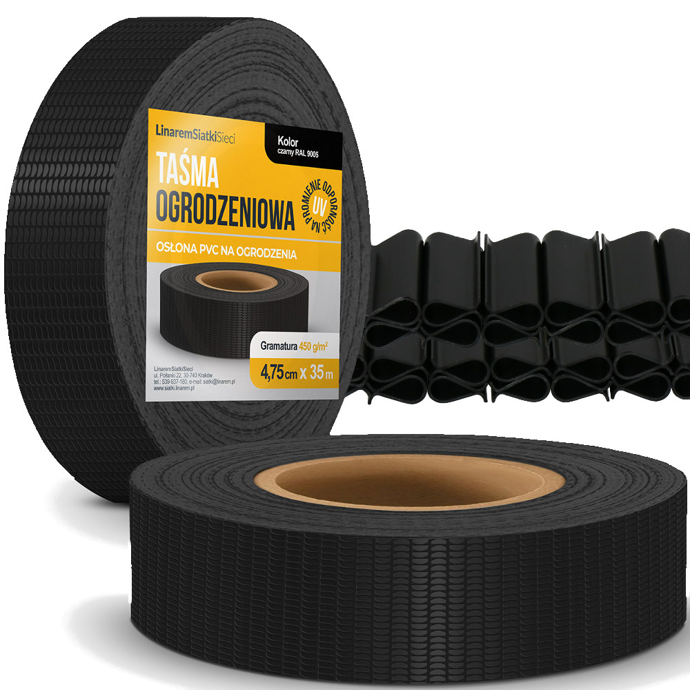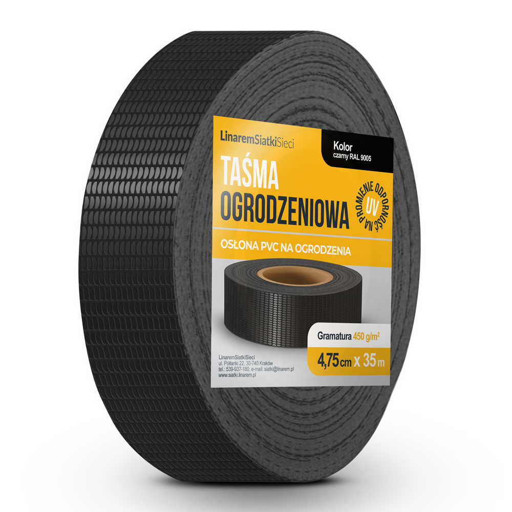 Czarna taśma ogrodzeniowa 4,75 cm Linarem Standard 450 g/mkw.