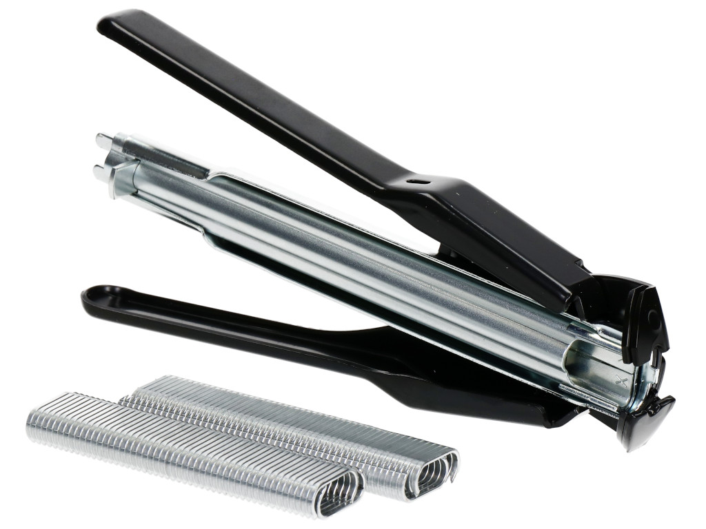 Zszywacz na klamry (zszywki) sprawdza się zarówno do siatek z tworzyw sztucznych jak i stalowych. Urządzenie wyposażone jest w automatyczny podajnik o pojemność magazynka 50 sztuk umieszczony w rękojeści. Zaciskarka z powodzeniem znajdzie także zastosowanie przy łączeniu kilku odcinków siatek ze sobą oraz w pracach ogrodowych jak zamykanie worków lub etykietowanie roślin.