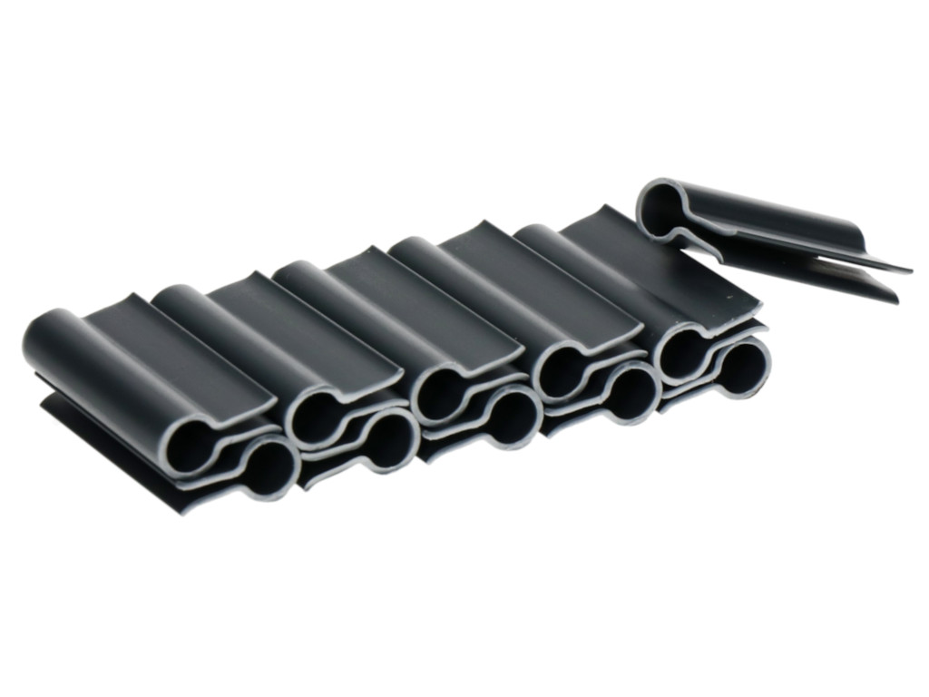 Klipsy przeznaczone są do montażu taśm ogrodzeniowych premium 4,75 cm o grubości 1,2 mm. Nie sprawdzą się w przypadku montażu taśmy standardowej o gramaturze 450 g/mkw.