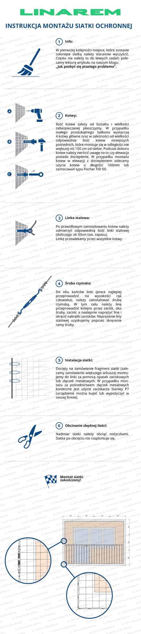 Niezbędny element w systemie montażu siatki zabezpieczającej na lince stalowej.