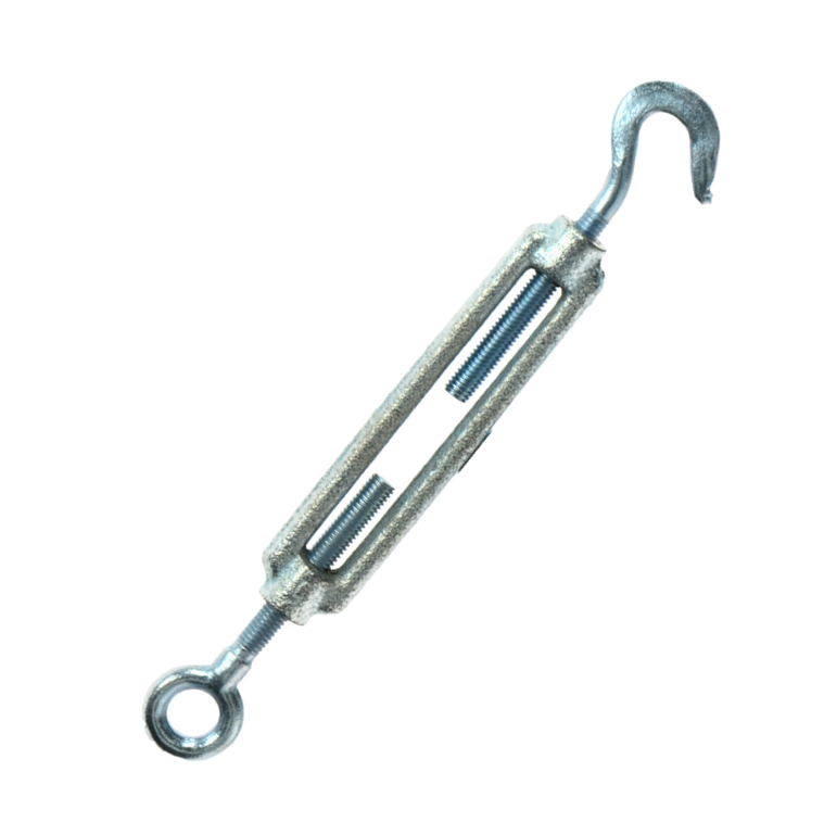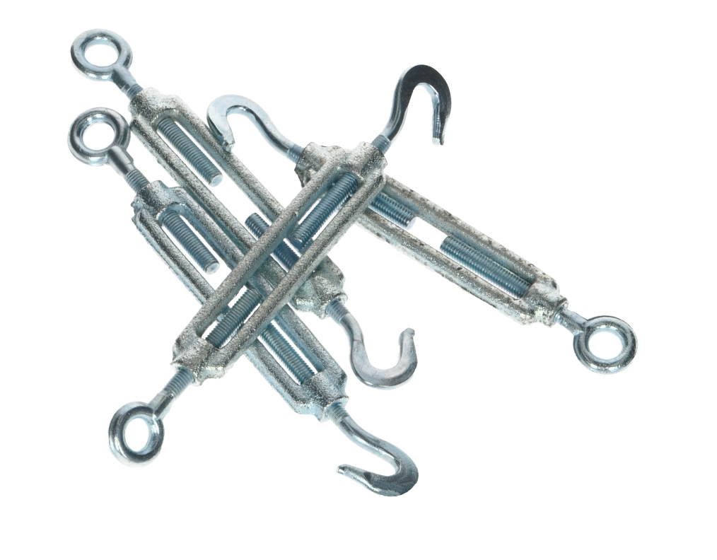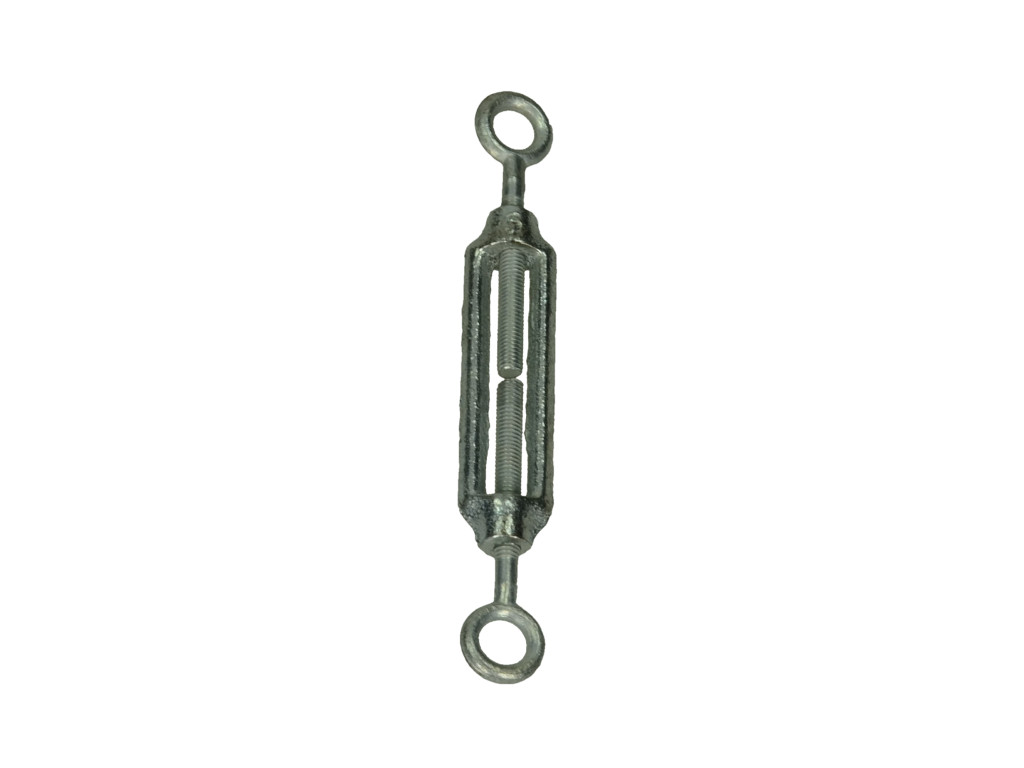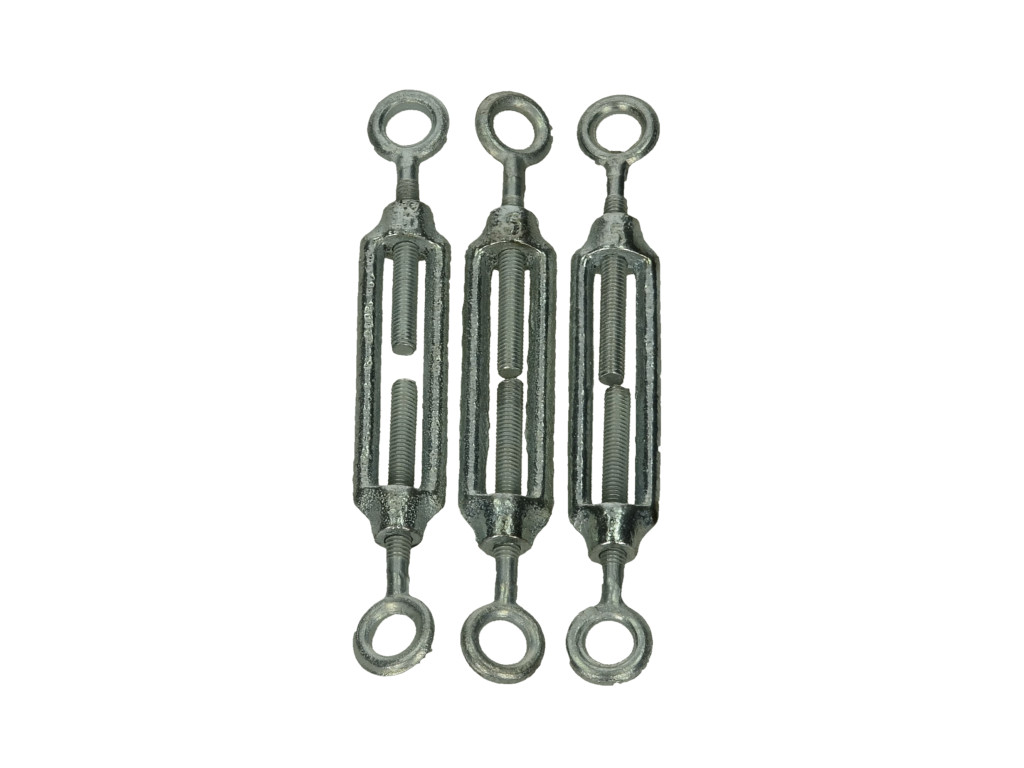 Regulacja naprężenia linki stalowej odbywa się przez przeplot linki przez haki na końcach śruby, a następnie reguluje się napięcie poprzez wkręcanie przeciwnie skierowanych do siebie gwintów znajdujących się w korpusie, aż do osiągnięcia żądanego rezultatu. Linkę należy dodatkowo zabezpieczyć przed zsunięciem za pomocą zacisków (cybantów)
