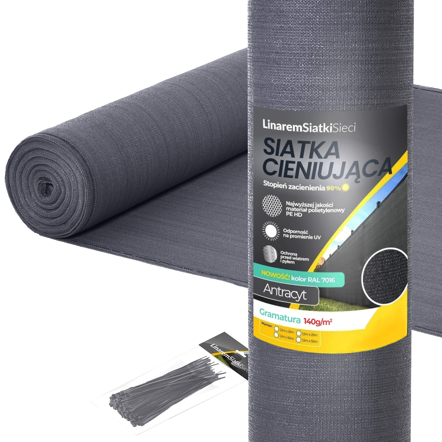 SIATKA CIENIUJĄCA 90% 1,5m x 25m LINAREM SIATKISIECI 140g/m2 W KOLORZE GRAFITOWYM