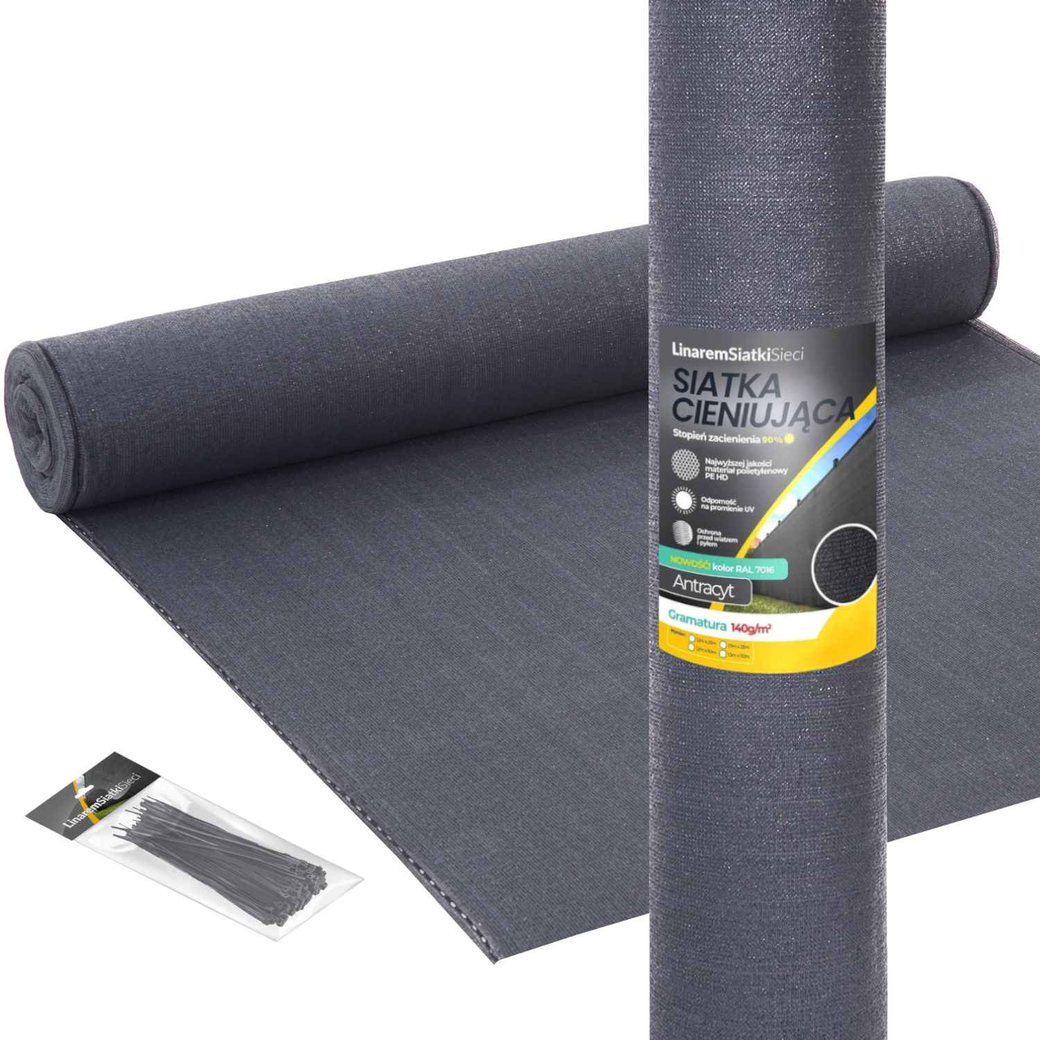 SIATKA CIENIUJĄCA 90% 1,2m x 10m LINAREM SIATKISIECI 140g/m2 W KOLORZE GRAFITOWYM