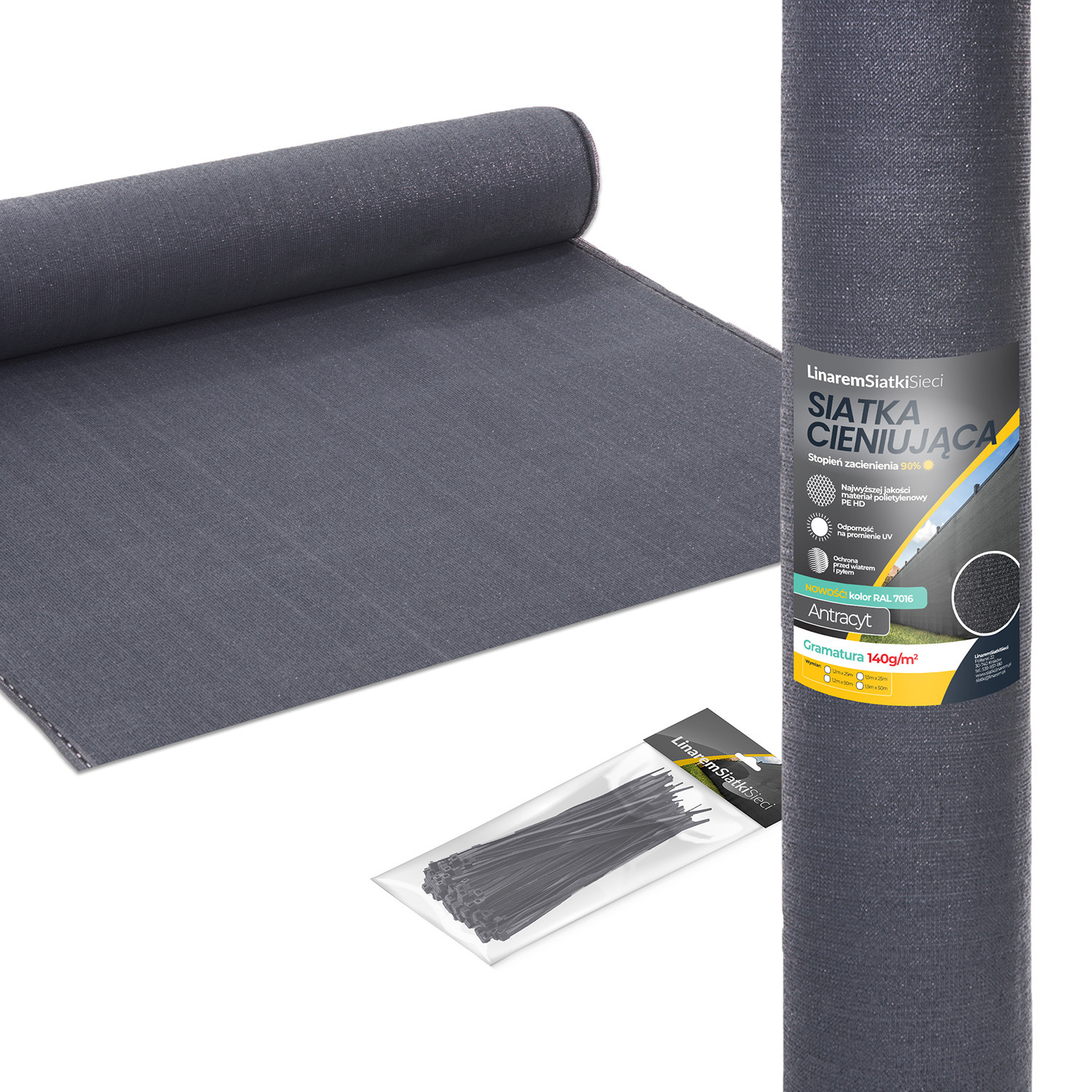 SIATKA CIENIUJĄCA 90% 1,2m x 25m LINAREM SIATKISIECI 140g/m2 W KOLORZE GRAFITOWYM