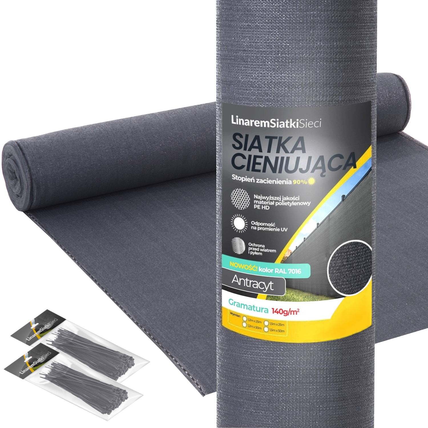 SIATKA CIENIUJĄCA 90% 1,8m x 50m LINAREM SIATKISIECI 140g/m2 W KOLORZE GRAFITOWYM