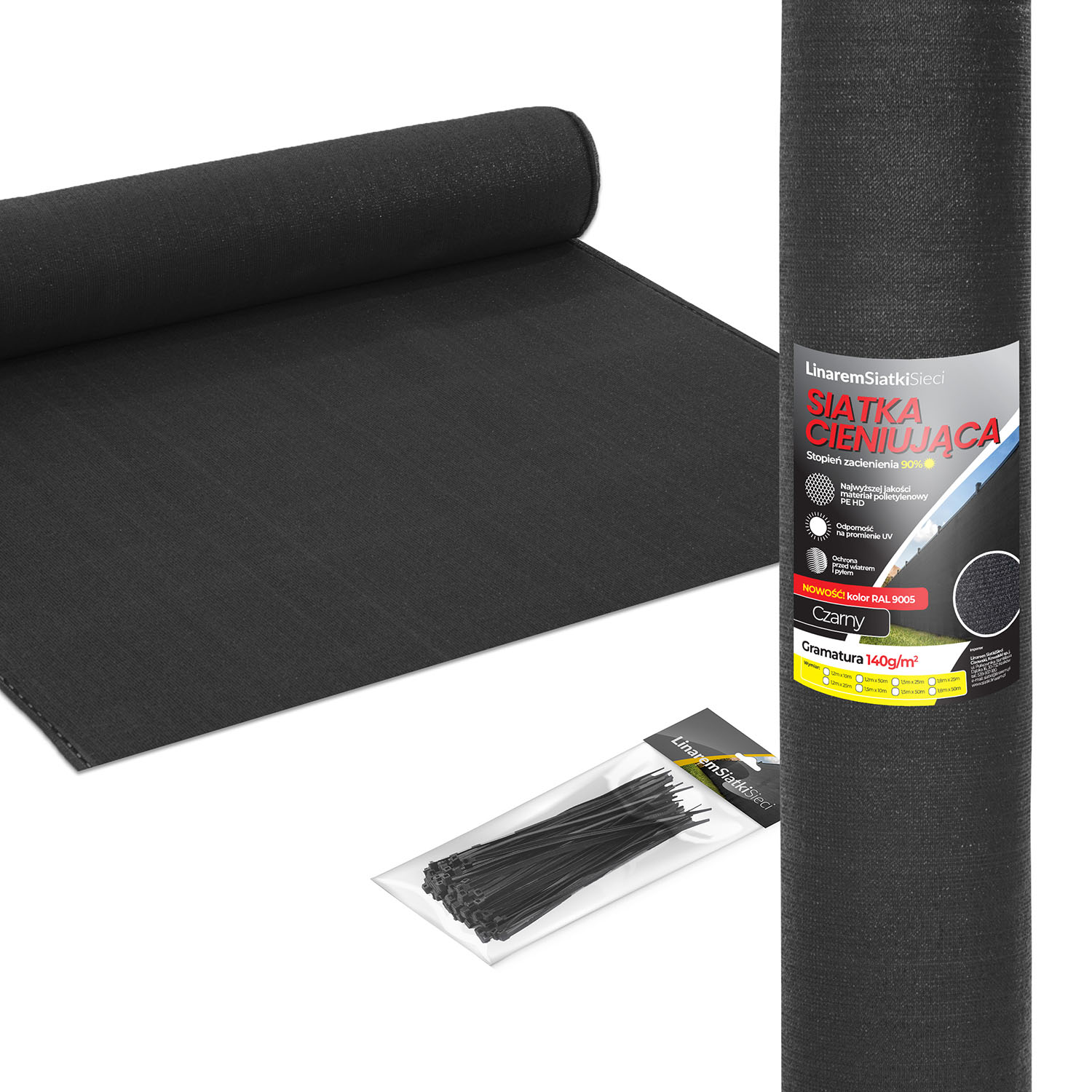 SIATKA CIENIUJĄCA 90% 1,2m x 25m LINAREM SIATKISIECI 140g/m2 W KOLORZE CZARNYM