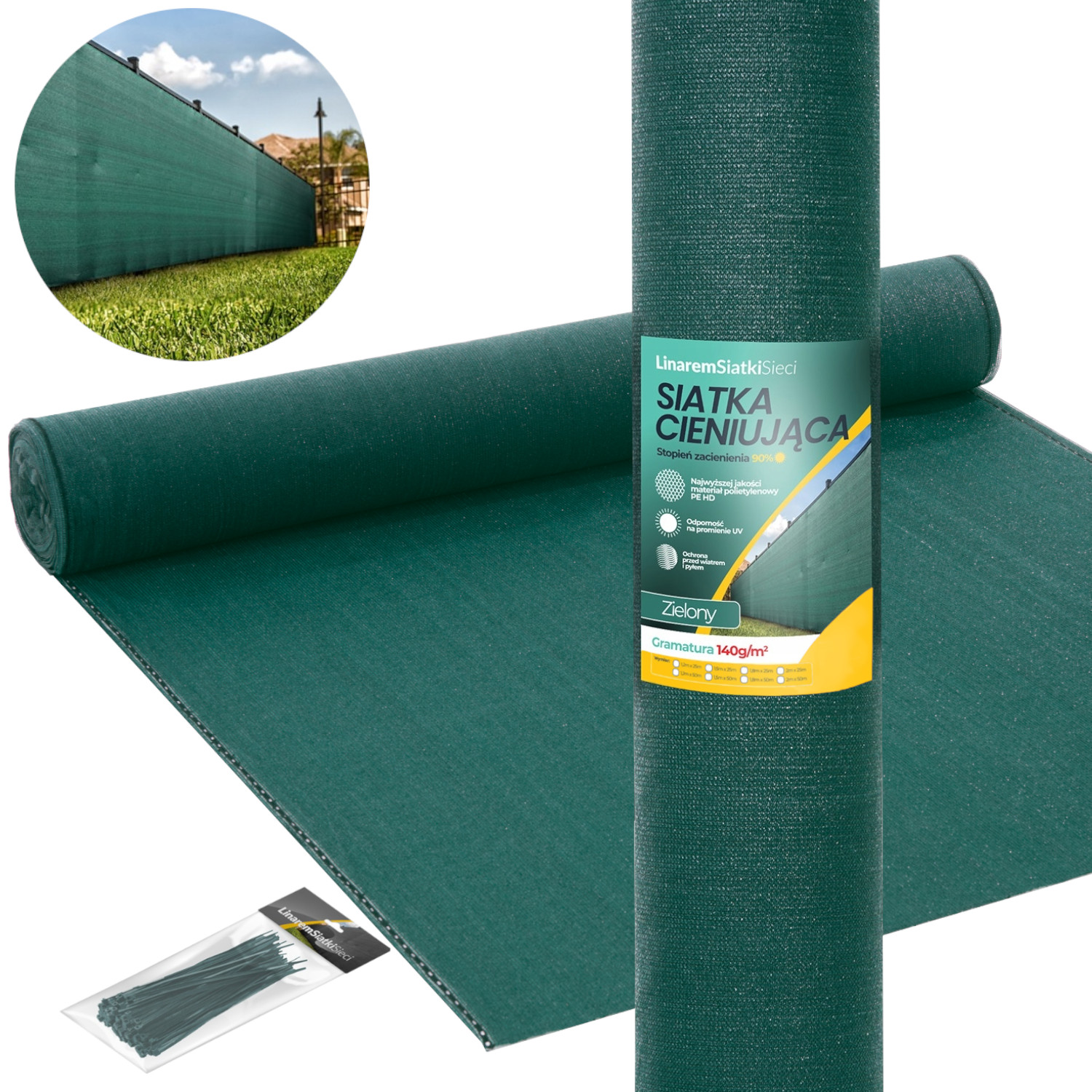 SIATKA CIENIUJĄCA 90% 1m x 25m LINAREM SIATKISIECI 140g/m2 W KOLORZE ZIELONYM