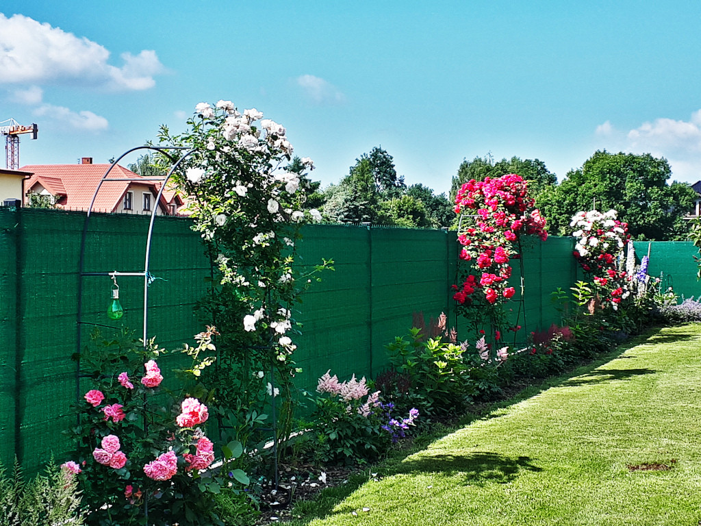 Zielony kolor siatki jest najpopularniejszym kolorem pasującym do niezwykle często spotykanych zielonych siatek ogrodzeniowych lub ogrodzeń panelowych oraz do potencjalnie zielonego otoczenia roślinności w ogrodzie lub na działce. Siatka cieniująca 90% maskując Twoje ogrodzenie zagwarantuje Ci odpowiedni stopień zacienienia i prywatności na posesji. Twoje ogrodzenie nabierze estetycznego i modnego wyglądu w uniwersalnym kolorze zielonym dodatkowo osłaniając ogród lub taras przed niepożądanym widokiem z zewnątrz. Siatka montowana na ogrodzeniu lub płocie osłoni również Twoją posesję przed nadmiernym nasłoneczniemiem, podmuchami wiatru, śniegiem, kurzem i innymi zanieczyszczeniami pochodzącymi z zewnątrz oraz wpłynie na akustykę osłanianego obszaru.