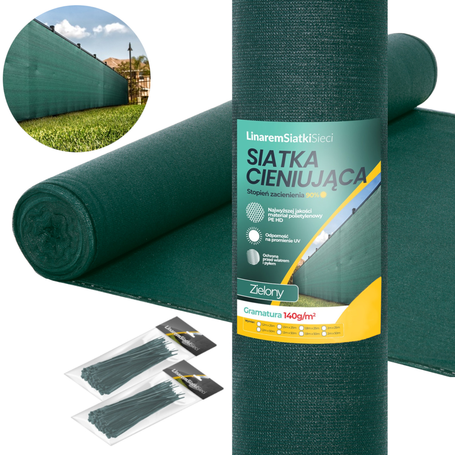 SIATKA CIENIUJĄCA 90% 1m x 50m LINAREM SIATKISIECI 140g/m2 W KOLORZE ZIELONYM