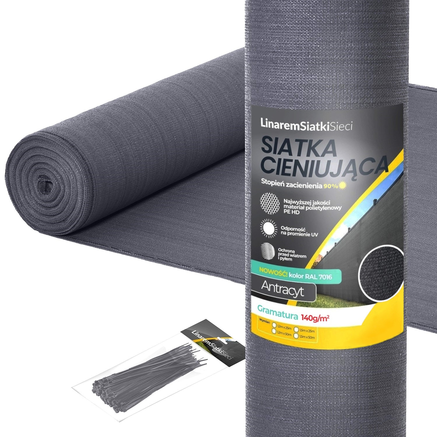 SIATKA CIENIUJĄCA 90% 2m x 25m LINAREM SIATKISIECI 140g/m2 W KOLORZE GRAFITOWYM
