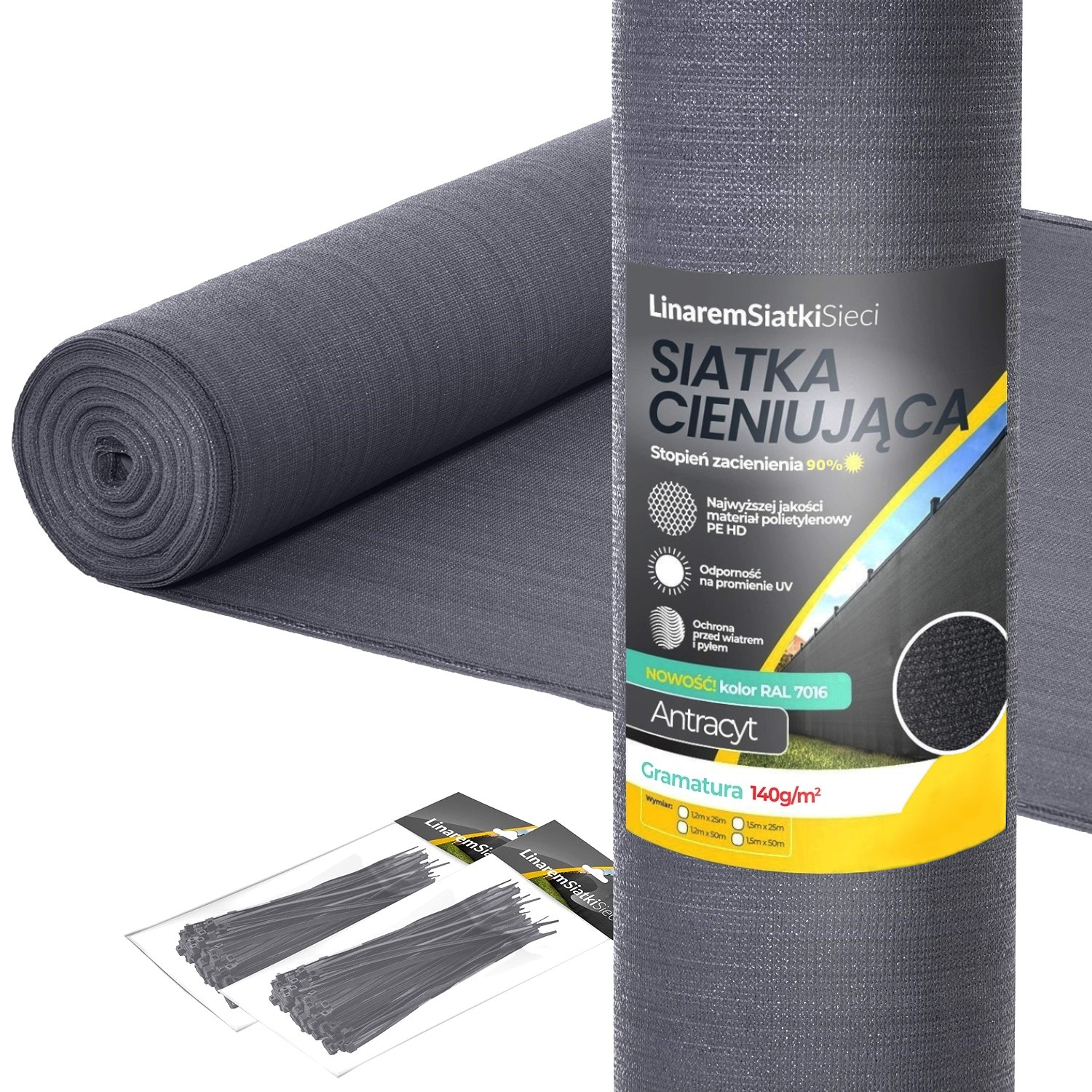 SIATKA CIENIUJĄCA 90% 2m x 50m LINAREM SIATKISIECI 140g/m2 W KOLORZE GRAFITOWYM