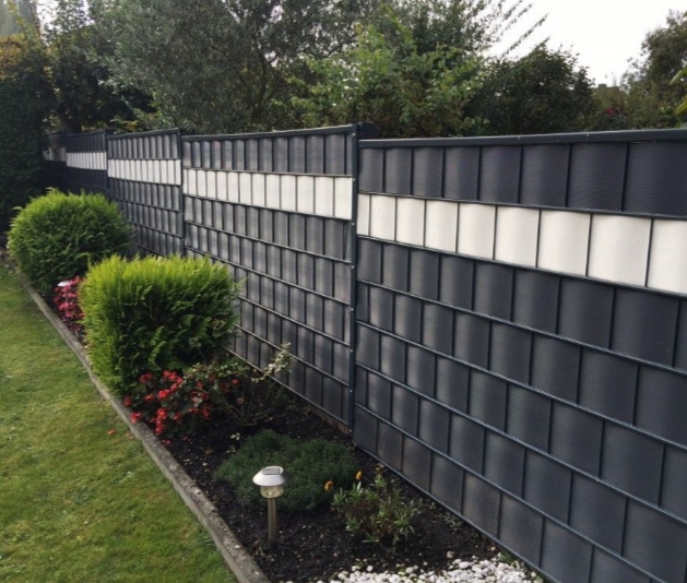 - - Osłona ogrodzeń panelowych 3D z przetłoczeniami - przy połączeniu z dedykowaną do nich taśmą ogrodzeniową 4,75 cm