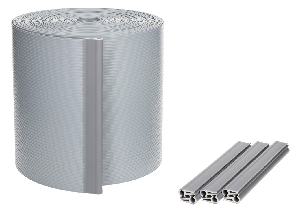 Montaż taśmy o standardowej szerokości 19 cm w połączeniu z węższą wersją o szerokości 4,75 cm pozwala na stworzenie wielu kombinacji kolorystycznych na ogrodzeniu.
