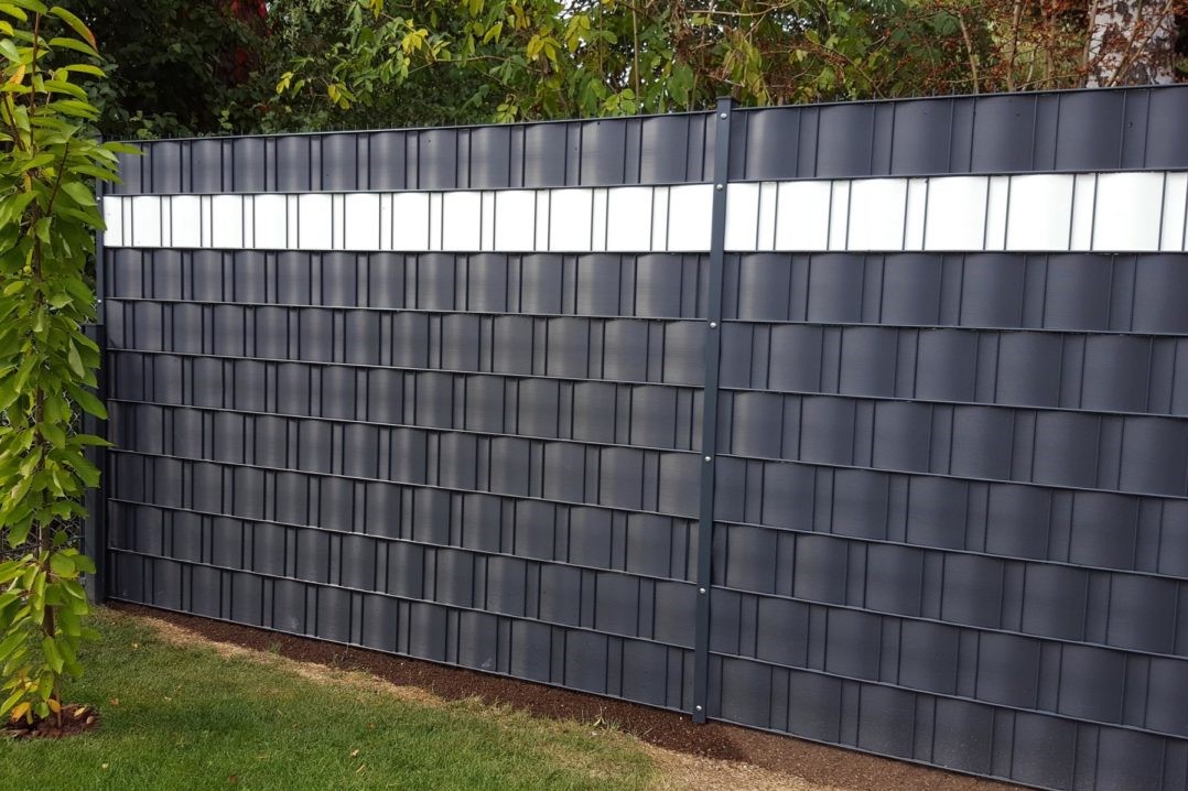Montaż taśmy o standardowej szerokości 19 cm w połączeniu z węższą wersją o szerokości 4,75 cm pozwala na stworzenie wielu kombinacji kolorystycznych na ogrodzeniu.
