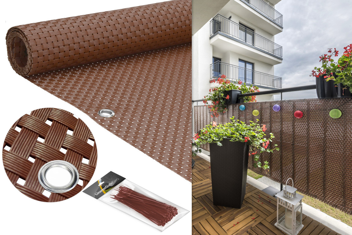 Mata technorattanowa brązowa na balkon Linarem PVC