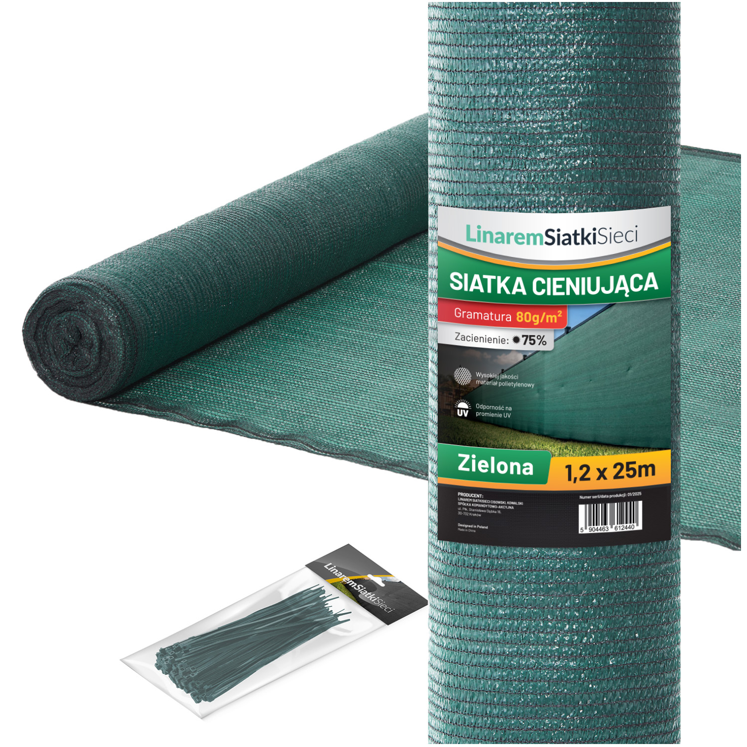 SIATKA CIENIUJĄCA 75% 1,2m x 25m LINAREM SIATKISIECI 80g/m2 W KOLORZE ZIELONYM