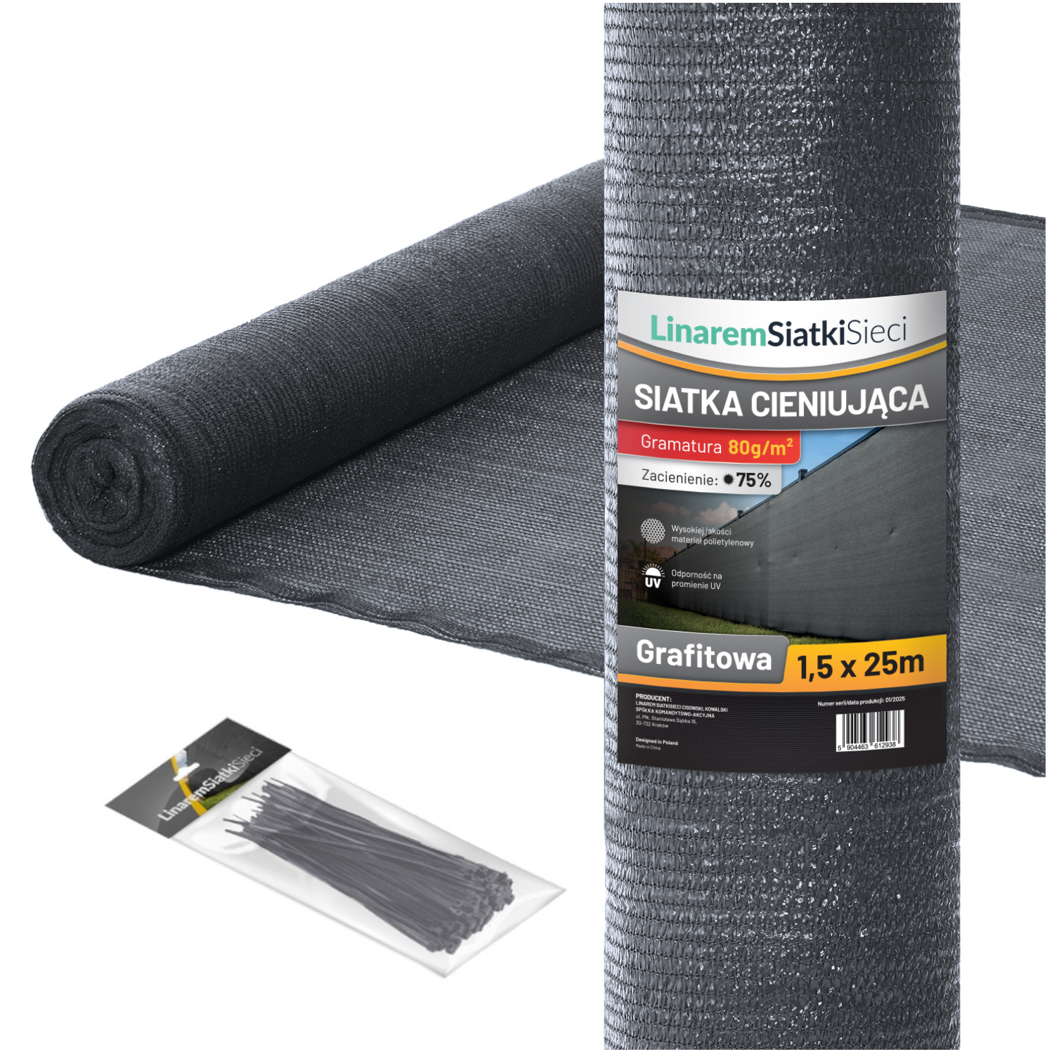 SIATKA CIENIUJĄCA 75% 1,5m x 25m LINAREM SIATKISIECI 80g/m2 W KOLORZE ANTRACYT