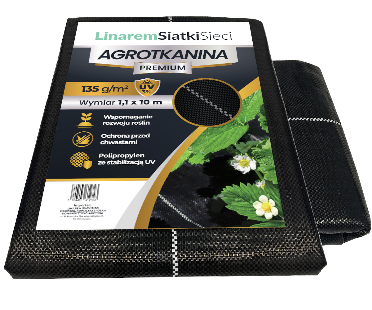 AGROTKANINA PREMIUM 135g W ROLCE 1,1m x 10m. CZARNA AGROWŁÓKNINA OGRODOWA Z UV 3%.