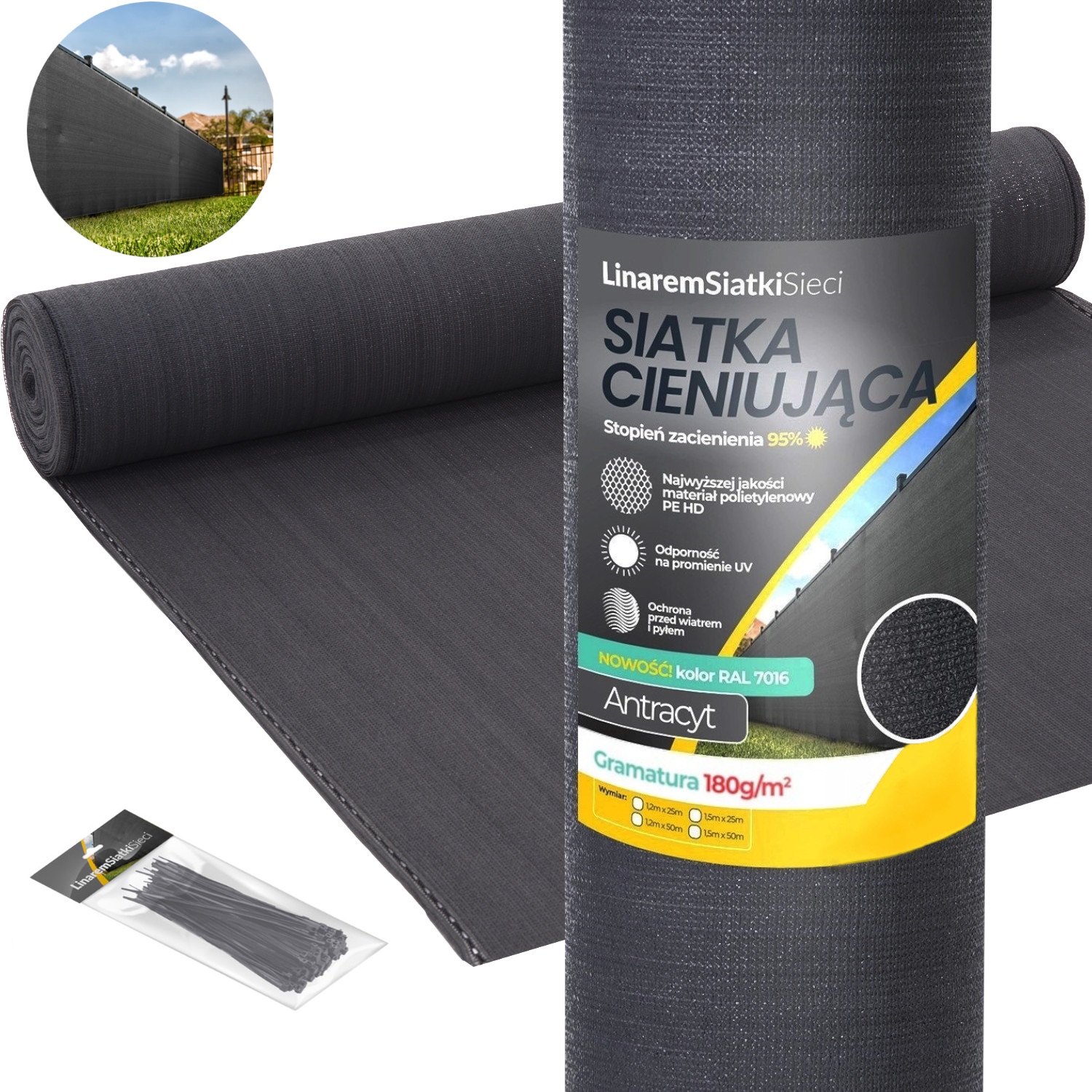 SIATKA CIENIUJĄCA 95% 1m x 25m LINAREM SIATKISIECI 180g/m2 W KOLORZE ANTRACYT (GRAFIT)