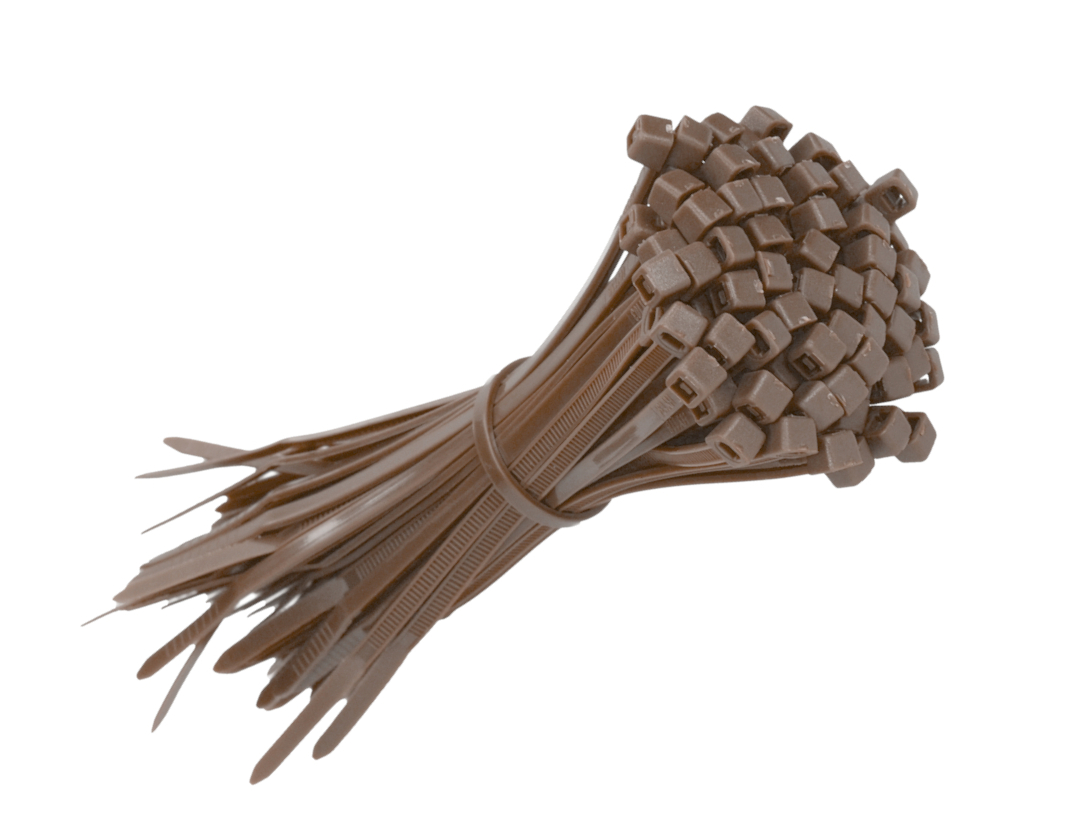 Brązowe opaski zaciskowe 4 mm x 150 mm do montażu siatek i mat osłonowych