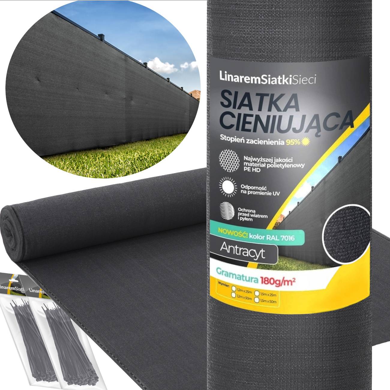 SIATKA CIENIUJĄCA 95% 1,5m x 50m LINAREM SIATKISIECI 180g/m2 W KOLORZE ANTRACYT (GRAFIT)