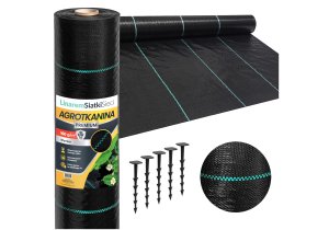 Agrotkanina zwaną matą ściółkujacą lub matą szkółkarską wykonana jest z tworzywa sztucznego - polipropylenu. Materiał ten produkowany jest z cienkich i mocnych nitek co tworzy efekt zwartej tkaniny. Wytrzymałość agrotkanin sprawia, że idealnie sprawdzają jako podłoże do sciółkowania roślin oraz jako bariera ochronna ograniczająca rozwój chwastów. Struktura i niezwykle wysoka gramatura agrotkaniny 160g w połączeniu z zastosowaniem stabilizacji UV 3% zdecydowanie bardziej wydłuża jej żywotność - materiał nie traci szybko koloru ani nie kruszeje od ekspozycji na słońce. Należy jednak zwrócić uwagę na faktyczny poziom zastosowania stabilizacji UV - jeżeli tkanina kruszeje i traci kolor po roku oznacza to brak zastosowania filtra UV lub jego mniejszy poziom. Materiał polipropylenowy z którego wykonane są agrotkaniny jest przystosowany do stosowania w warunkach zewnętrznych tzn. jest odporny nie tylko na promieniowanie słoneczne dzięki stabilizacji UV, ale także deszcz, wilgoć czy zmiany temperatur. Agrotkaniny doskonale chronią glebę przed utratą wilgoci, utrzymują odpowiednią temperaturę gleby oraz pomagają jej zachować odpowiednie składniki mineralne co zdecydowanie przyspiesza rozwój roślin w ogrodzie. Agrotkaniny niezależnie od gramatury przepuszczają wodę - nie blokują dostępu do gleby wody podczas podlewania czy deszczu.
