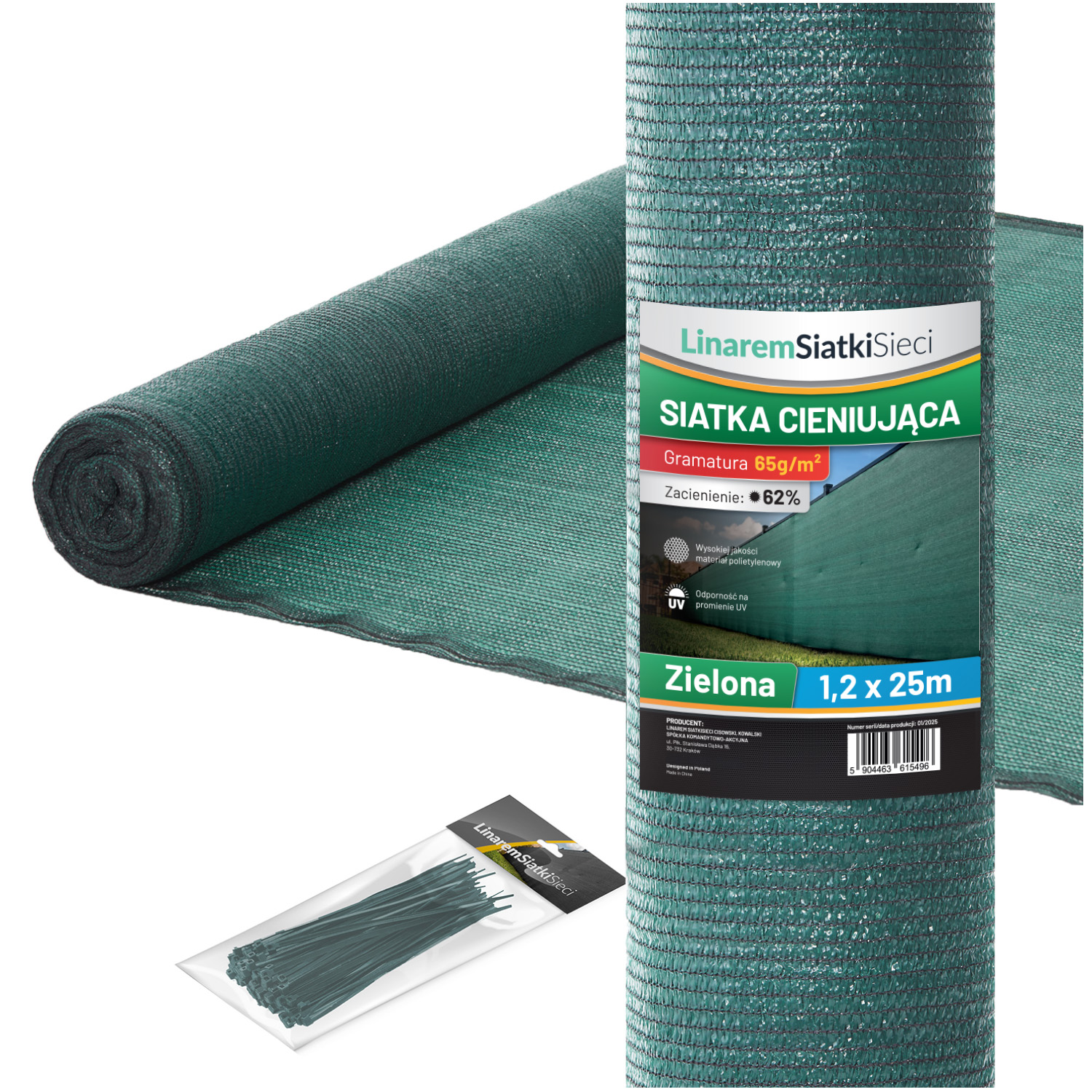 SIATKA CIENIUJĄCA 62% 1,2m x 25m LINAREM SIATKISIECI 65g/m2 W KOLORZE ZIELONYM