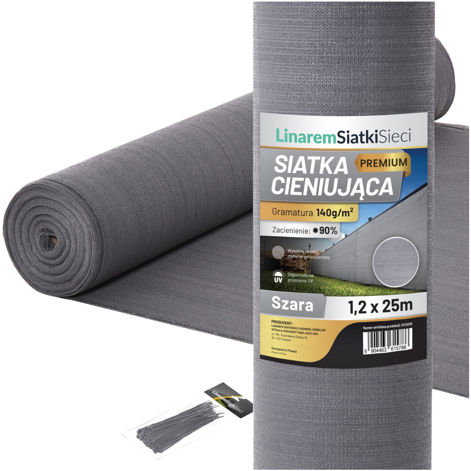 SIATKA CIENIUJĄCA 90% 1,2m x 25m LINAREM SIATKISIECI 140g/m2 W KOLORZE SZARYM