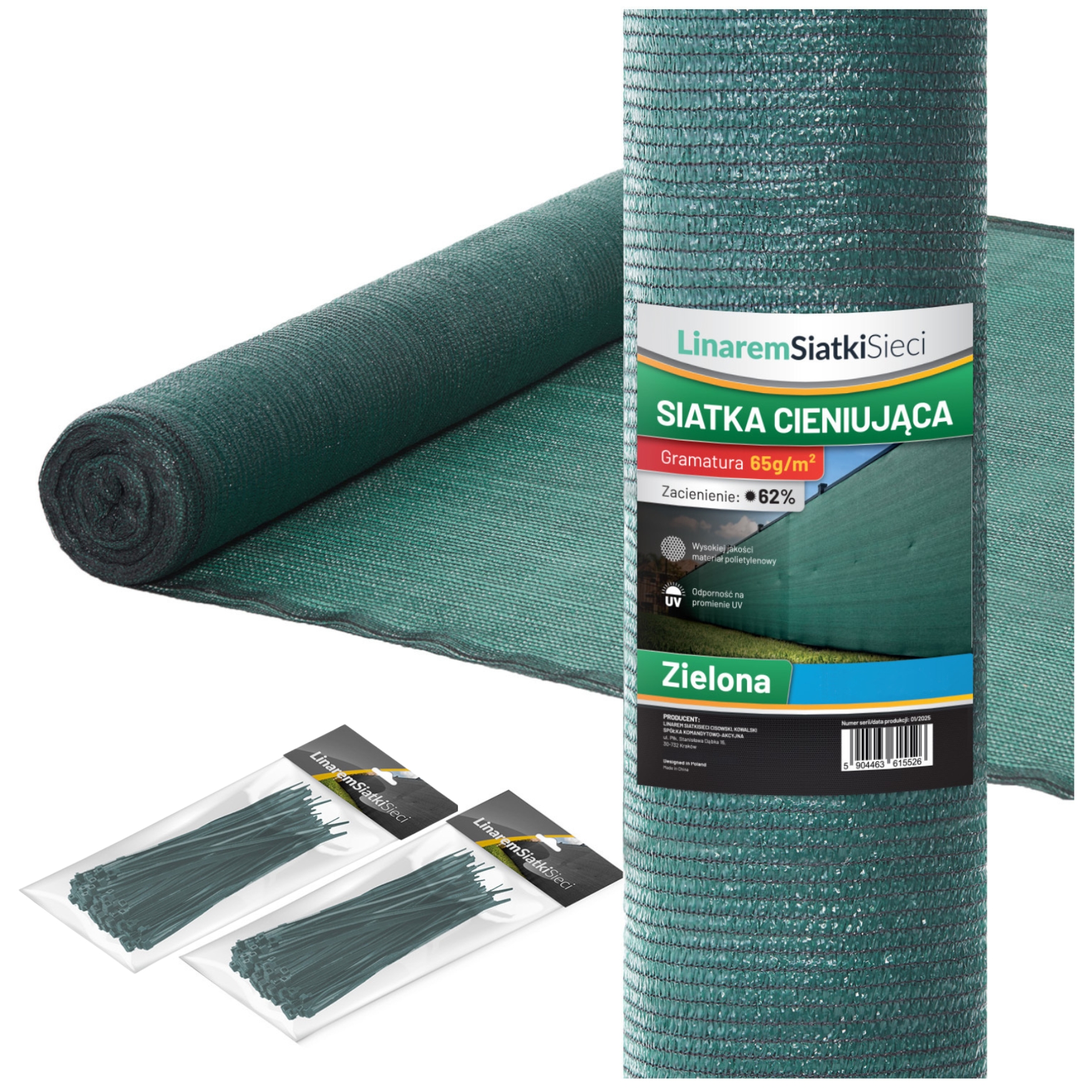 - ✓ Stopień cieniowania 62% - prawdziwy stopień wynikający z gramatury/gęstości siatki - wiecej informacji tutaj