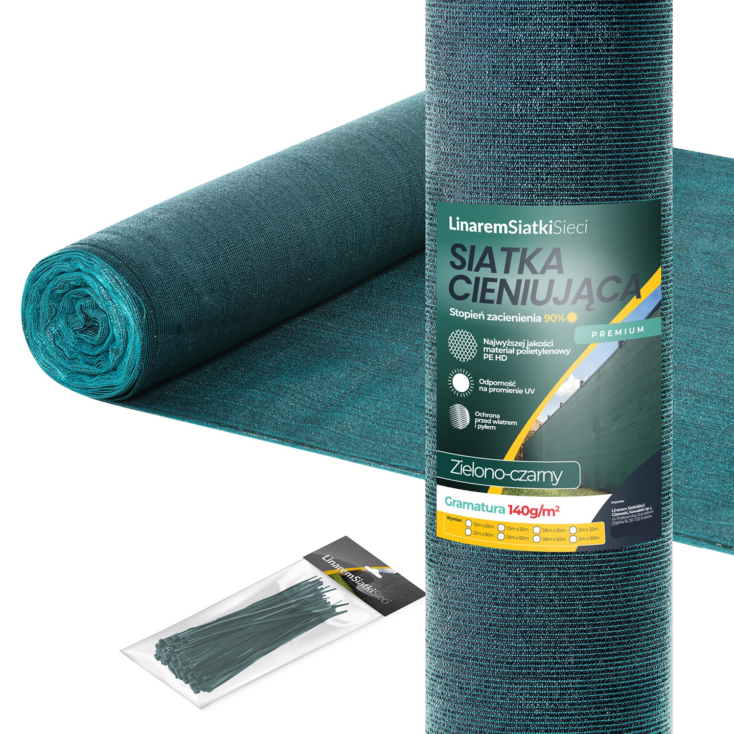 Siatki cieniujące premium 140 g/m² charakteryzują się wyjątkowym połączeniem kolorów zielonego i czarnego.