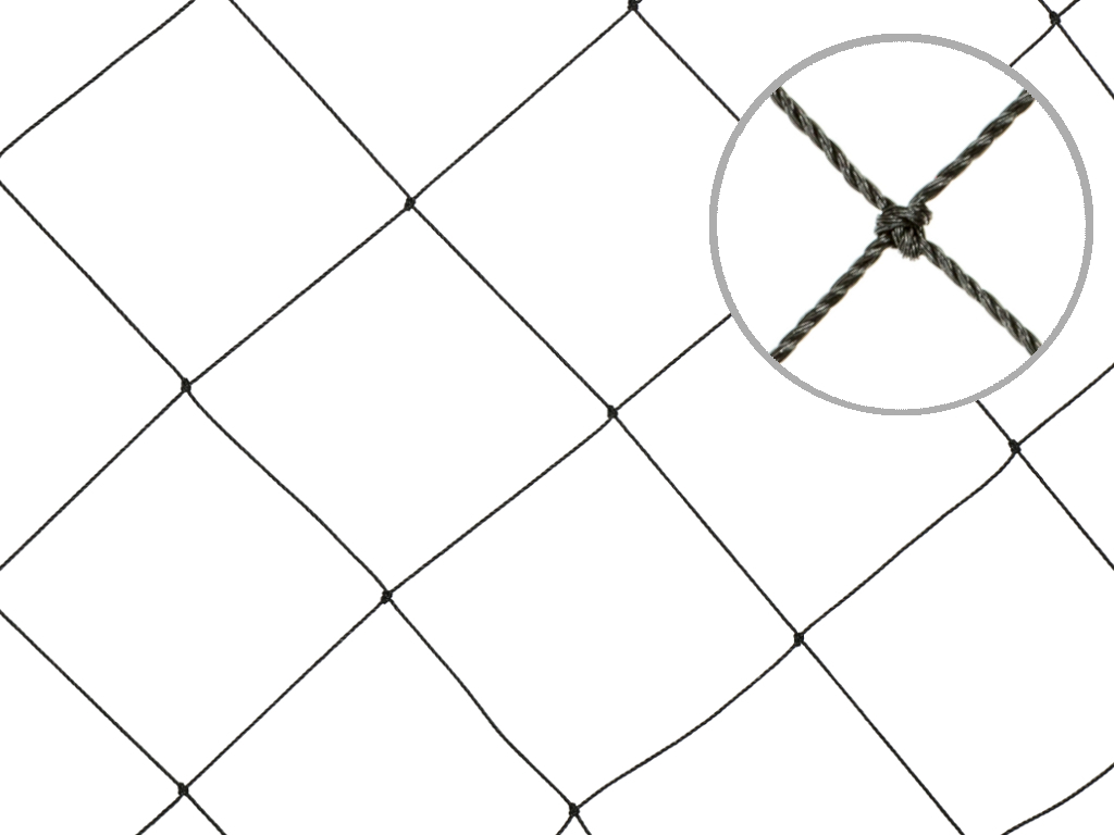 Siatka na woliery wykonana jest ze sznura polietylenu PE HD o średnicy 1,2 mm. Oczka siatki układają się w romby, co wymaga jej odpowiedniego naciągnięcia (zachowanie określonej ilości oczek na metr szerokości i długości) w celu uzyskania docelowego rozmiaru sieci.