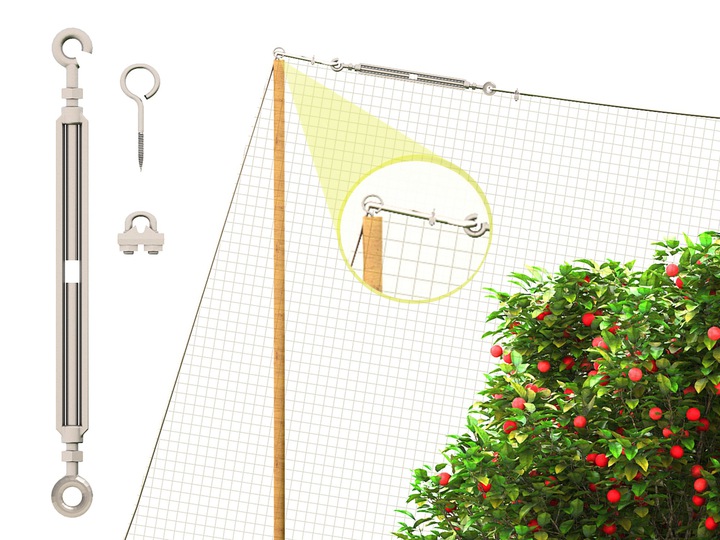 Siatka przeciw ptakom może być bezpośrednio nakładana na drzewa lub krzewy. Jednak w celu osiągnięcia najwyższego stopnia zabezpieczenia zalecamy stosowanie siatki na odpowiednio przygotowanej konstrukcji, zwłaszcza w przypadku zabezpieczania kilku krzewów, drzew lub całych sadów i plantacji.